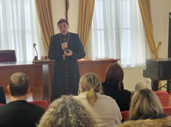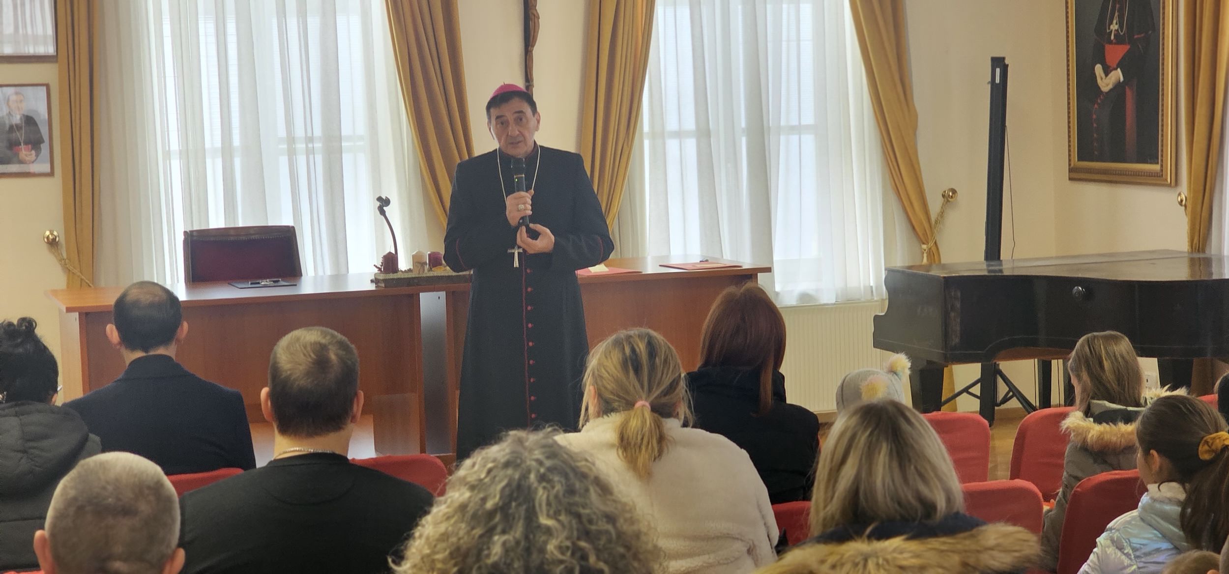 Na početku susreta biskup Medo srdačno je pozdravio okupljene stipendiste i njihove obitelji te ih pozvao na zajedničku molitvu. U svom obraćanju ohrabrio ih je da ne gube nadu, nego da, osobito u trenucima životnih i financijskih teškoća, molitva ostane središte obitelji i života. Posebno je istaknuo važnost obiteljske molitve i potaknuo prisutne da krunica bude trajno prisutna u njihovim domovima kao oslonac i vodilja kroz zahtjevna razdoblja.