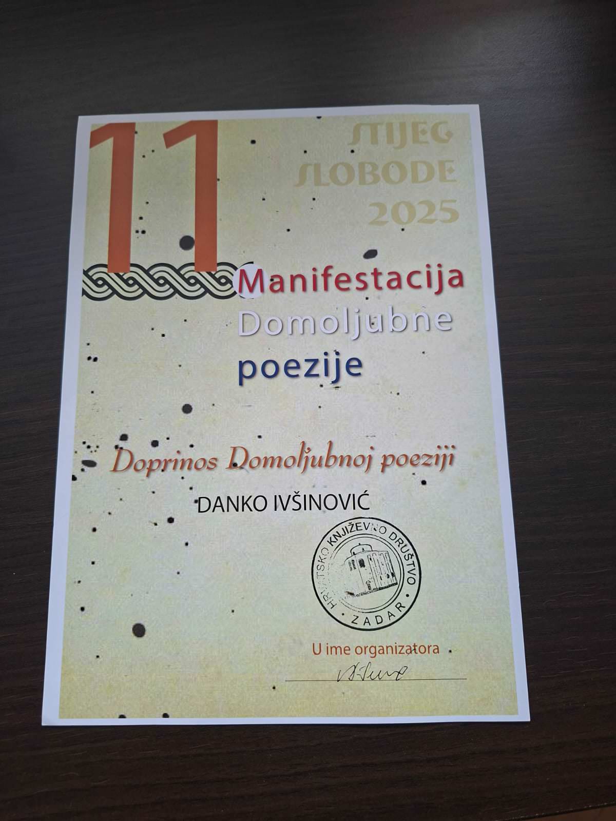 Danko Ivšinović nagrađen za Doprinos Domoljubnoj poeziji
