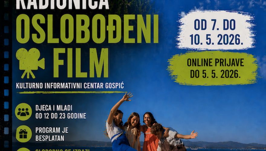 Djeco i mladi između 12 i 23 godine, ako vas zanima film ovo je mjesto za vas. Do 5. svibnja ispunite online prijavnicu dostupnu na stanicama KIC-a Gospić. Program je besplatan, a počinje razradom ideja i filmskih priča koje će se uobličiti u scenarij, nastavlja se produkcijskom pripremom i snimanjem te montažom snimljenih filmova. Radionica završava prigodnom podjelom diploma i javnom projekcijom snimljenih radova. Voditelji radionice su filmski redatelji Anja Koprivšek i Toma Zidić, a organizator je KIC Gospić u kojemu će se radionica održavati u vremenu od 7. do 10. svibnja. Ovaj projekt sufinanciran je sredstvima državne potpore koju dodjeljuje Hrvatski audiovizualni centar.