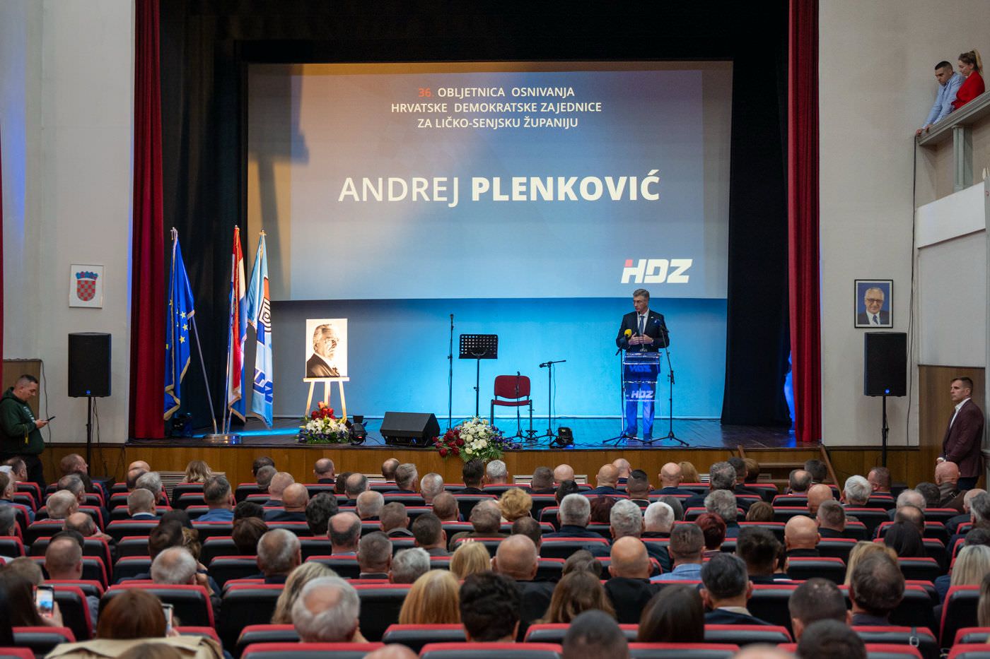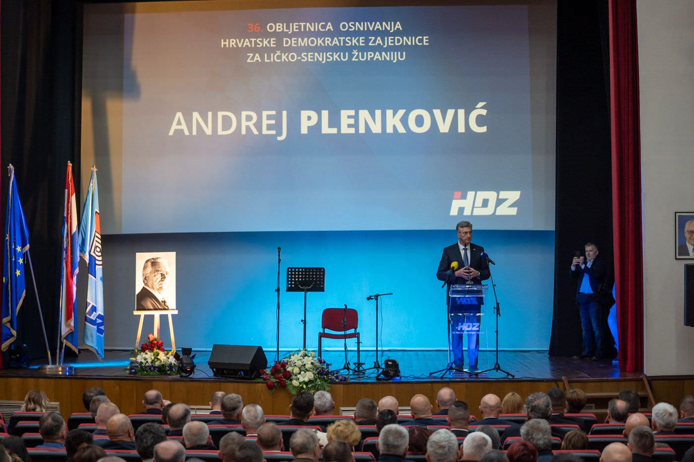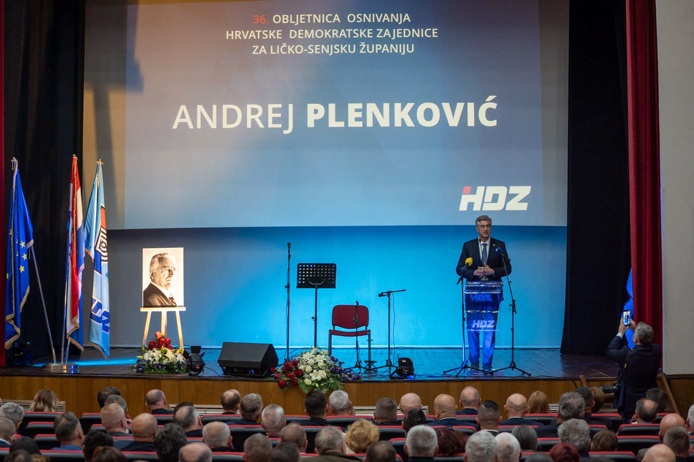 Središnji politički govor održao je predsjednik HDZ-a i Vlade RH Andrej Plenković, koji je obljetnicu stranke u Ličko-senjskoj županiji smjestio u širi politički, gospodarski i društveni kontekst. Na početku je čestitao obljetnicu svim utemeljiteljicama i utemeljiteljima, hrvatskim braniteljima i članovima stranke, naglasivši kako je riječ o stranci dr. Franje Tuđmana i o političkoj opciji koja je krajem osamdesetih i početkom devedesetih artikulirala ideju hrvatske slobode, demokracije i državnosti.