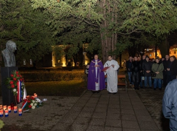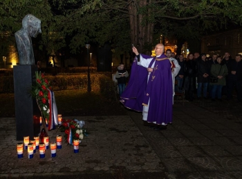 Nakon mise izaslanstvo je položilo cvijeće i zapalilo svijeće ispred biste dr. Tuđmana u Gospiću, gdje je o. Anto Knežević predvodio molitvu i udijelio blagoslov u čast prvog hrvatskog predsjednika.