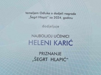 Za svoja postignuća proglašena je najboljim učenicom Strukovnih škola na razini Hrvatske u 2024. godini, za što je dobila priznanje Ministarstva gospodarstva, pod nazivom "Šegrt Hlapić". Trenutno se Helena priprema za međunarodno natjecanje u frizerstvu, OMC Hairworld "World Cup" u Parizu, u kategoriji "Rising Star", koje okuplja najbolje frizere iz cijelog svijeta, što će se održati od 11. do 15. listopada ove godine. Heleni pri tome želimo sve najbolje!!!