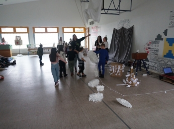 Radionice su se održavale u predavaonicama na Odjelu, a po njihovom završetku svi su se sudionici okupili u polivalentnoj dvorani te tamo zajedno izvodili program, točku po točku - dok su polaznici jedne radionice nastupali, ostali su promatrali iz gledališta i tako redom. A iz gledališta su ih pratili, osim učenika ova četiri razreda koja su sudjelovala u radionicama, i sve tri grupe učenika produženoga boravka koji su došli u pratnji svojih učiteljica Katarine Trešnjić i Maje Žarković i učitelja Vanje Antića.