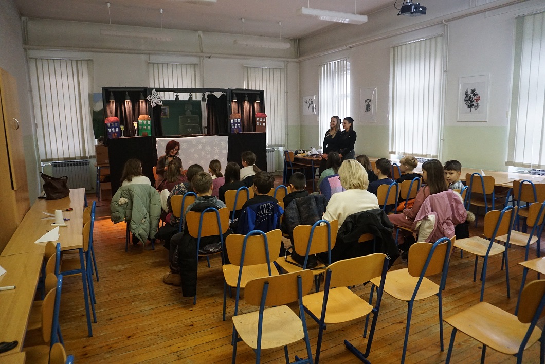 U scenskoj radionici „Djevojčica sa šibicama“ sudjelovali su učenici 3. b sa svojom učiteljicom Jasminkom Ćaćić i otkrivali čari lutkarstva kroz scensko-lutkarsku obradu priče Djevojčica sa šibicama H. C. Andersena.